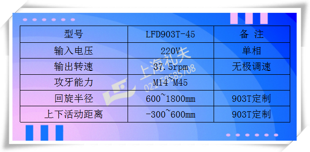 2、  LFD903T-45型 電動攻絲機  工作活動最大范圍為半徑:600mm-1800mm