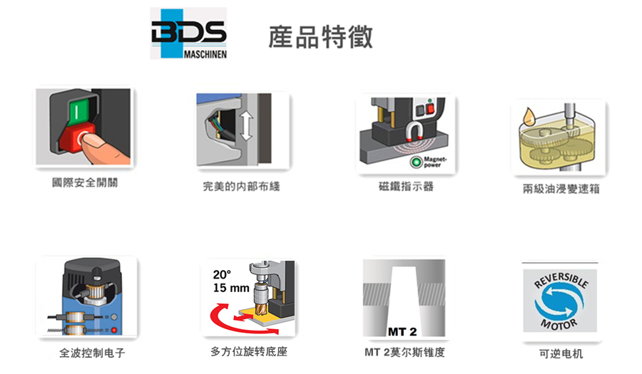 介紹:德國制造MAB 485 SB磁力鉆是ProfiPLUS類磁力鉆的最佳介紹 - 具有旋轉(zhuǎn)底座調(diào)節(jié)功能。在進(jìn)行鉆井工作時(shí)無意中或在水平情況下對(duì)操作員進(jìn)行有形的減輕。一個(gè)好主意變?yōu)楝F(xiàn)實(shí):BDS現(xiàn)在提供四種磁力鉆,具有兩種性能類別的可移動(dòng)磁力調(diào)節(jié)功能。旋轉(zhuǎn)底座的工作原理:將磁力鉆大致放置到位,激活磁鐵,釋放調(diào)節(jié)功能并輕松調(diào)節(jié)。旋轉(zhuǎn)底座使鉆頭能夠放置在正確的位置,而無需同時(shí)保持磁力鉆的整個(gè)重量。即使磁力鉆用鏈條固定,這種浮雕也是工作安全性的另一個(gè)因素。 MAB 485旋轉(zhuǎn)底座磁力鉆的優(yōu)點(diǎn)連續(xù)電子控制電機(jī)輸出和速度,鉆芯和麻花鉆,counters孔,鉸孔,螺紋切削。兩級(jí)齒輪箱,非破壞性的油浴變速箱。帶有旋轉(zhuǎn)底座,可調(diào)節(jié)功能,便于鉆頭定位。