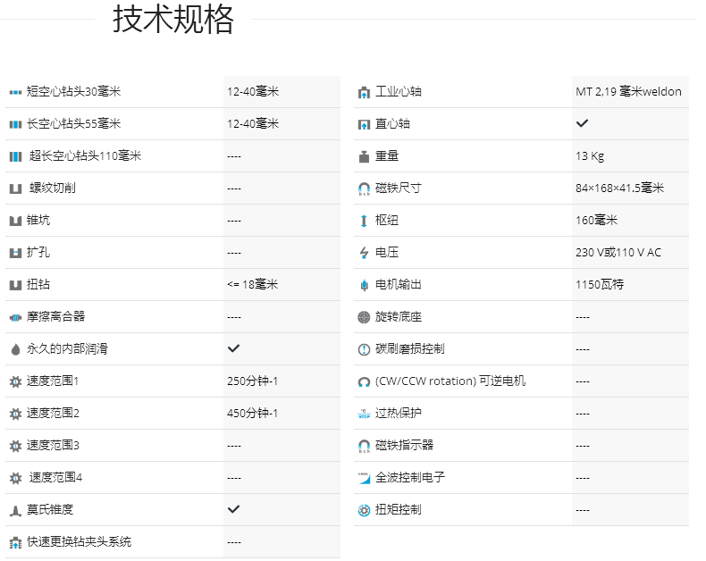 介紹:德國制造的40毫米直徑鉆孔能力與莫氏錐度2經濟型磁力鉆。 10.5安培雙絕緣電機,MT2 - “3/4”直接心軸,帶自動冷卻功能。使用環形切割器,最大直徑為3/4“的Twist鉆孔;帶夾頭的6-1 / 3“行程,帶3/4”夾頭,MABasic 450磁力鉆可輕松轉換為標準鉆床,傳統麻花鉆具有6-1 / 3“行程.ProfiBASIC:高性能 - 低BDS Maschinen希望為專業用戶填補這一新型磁力鉆機概念的空白,這些用戶不能在質量或性能上妥協,但能夠以優惠的價格放棄舒適性和配件。