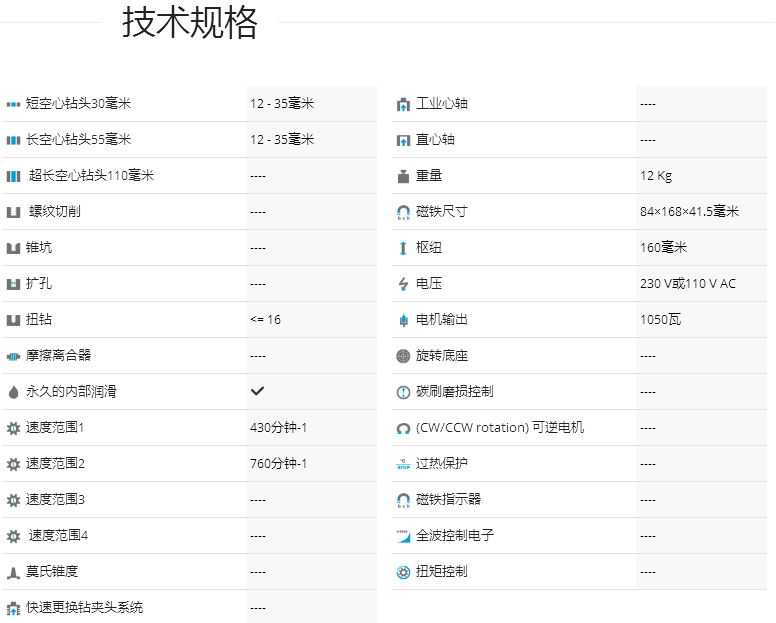 介紹:采用德國制造,直徑35毫米的鉆孔能力磁力鉆床,以及環(huán)形切割機,憑借其雙速齒輪箱電機,它也是一種理想的用于扭轉(zhuǎn)鉆孔的磁力鉆床。功能強大,可靠,內(nèi)部潤滑系統(tǒng),小巧輕便,MABasic 400磁力鉆機可鉆至1-1 / 2“直徑,9.5安培雙絕緣電機,3/4”直接刀桿使用環(huán)形刀具,扭轉(zhuǎn)鉆孔使用夾頭,以3/4“直徑; 6-1 / 3”行程,使用1/2“夾頭,MABasic 400可輕松轉(zhuǎn)換為傳統(tǒng)麻花鉆的6-1 / 3”行程的標準鉆床。 ProfiBASIC:高性能 - 低價格。 BDS Maschinen希望為專業(yè)用戶填補這一新的磁力鉆壓機概念,這些用戶不能在質(zhì)量或性能上妥協(xié),但能夠以優(yōu)惠的價格放棄舒適性和配件。