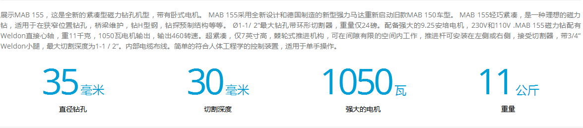 名稱:MAB 155 緊湊型磁力鉆